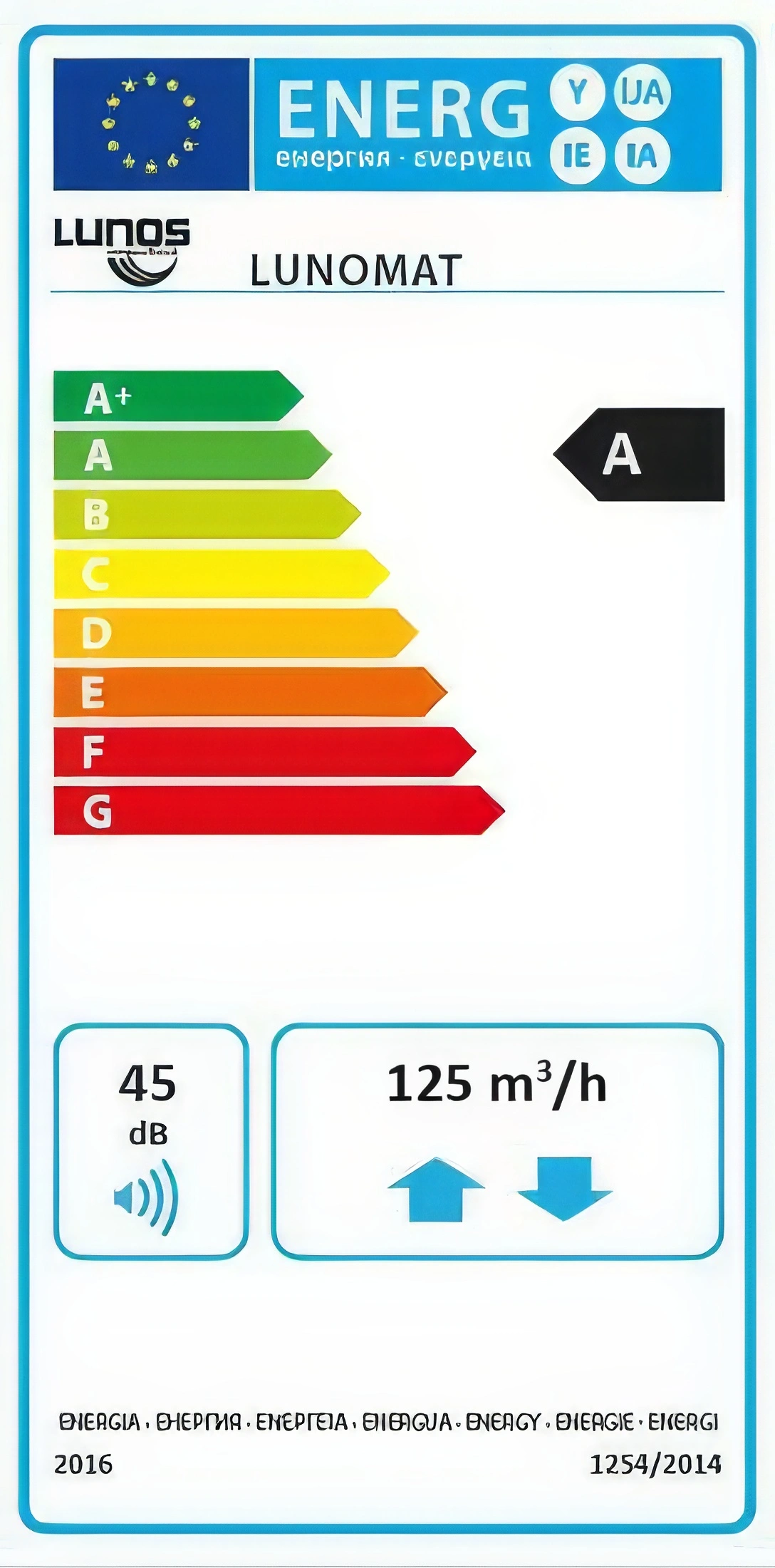 | Μέγιστη κατανάλωση ισχύος στα 125 m³/h, 100 Pa | 52W |