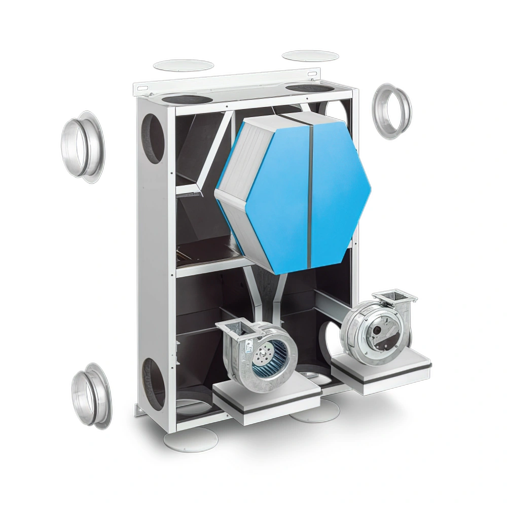 Ο εξαιρετικά αποδοτικός εναλλάκτης θερμότητας ενθαλπίας έχει μέσο ποσοστό ανάκτησης θερμότητας 84% και μπορεί να προσφέρει μια ευχάριστα άνετη εσωτερική ατμόσφαιρα χάρη στις ιδιότητες αφύγρανσής του.