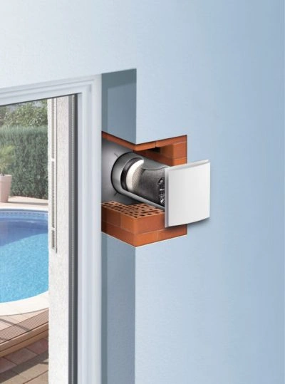 Εδώ, όλα τα πλεονεκτήματα των αεραγωγών του εξωτερικού τοίχου, όπως η υψηλή απόδοση αέρα, χωρίς περιορισμό στην αρχιτεκτονική σχεδίαση , η υγιεινή και η ηχομόνωση, μπορούν να γίνουν πραγματικότητα σε συνδυασμό με μία διακριτική εξωτερική εμφάνιση της περσίδας.